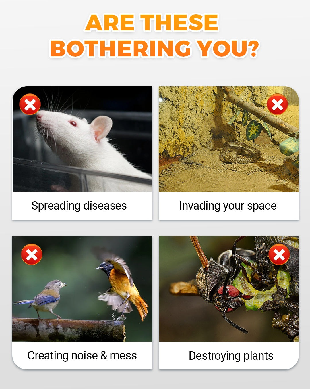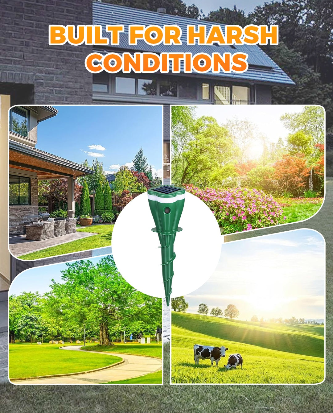 SOLAR POWERED: This waterproof repeller operates continuously throughout the day, powered by solar energy. No need to replace batteries, ensuring reliable performance in all weather conditions with a wide coverage area for optimal protection.